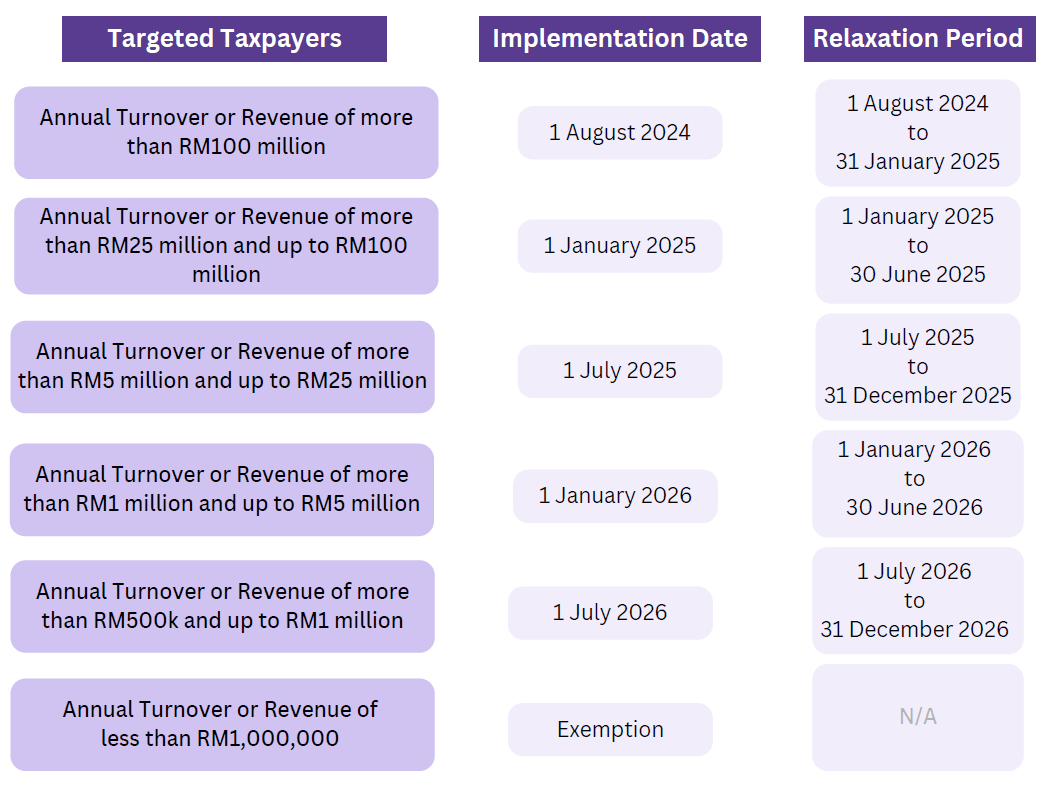 Below is the e-Invoice implementation timeline: